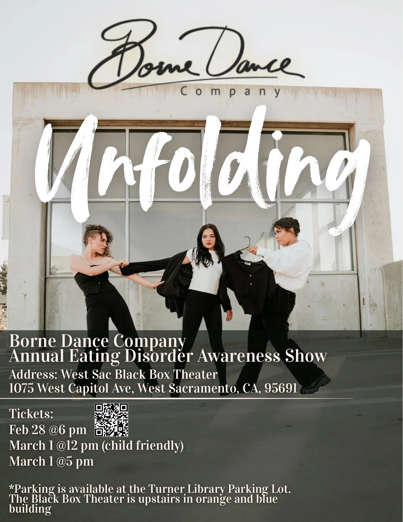 Borne Dance Company would like to give a special thank you to our board members: Eva Monary, Jocelyn Atchley, Chelsea Blake, Elizabeth Milanese, Marriane Young. Our sponsors and donors the Monary family, Doma Studio, Papa’s Coffee Co, Skin Love + Lashes, Capital Stage, The Sacramento Ballet, Forcier Casting and Productions. The West Sac Black Box Theater, Geordi Royston, Courtney Murray, and our volunteers.